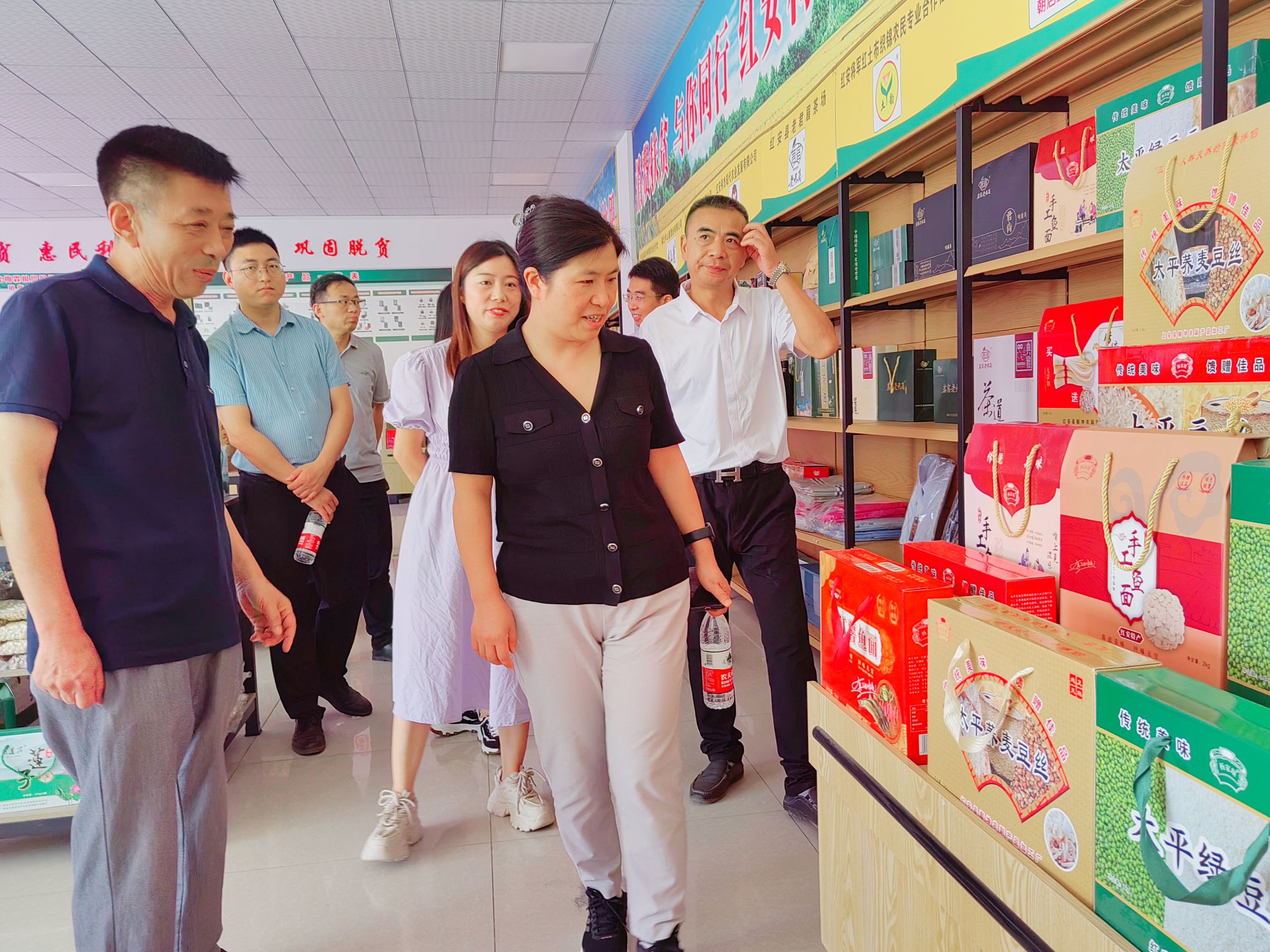 随后,胡晓艳一行实地考察了梅霖粮贸股份有限公司、红安县博岸情种植养殖合作社等地标优品展示销售中心,进行了现场对接,要求学校相关职能部门根据有关政策规定,认真落实好爱心消费帮扶工作。