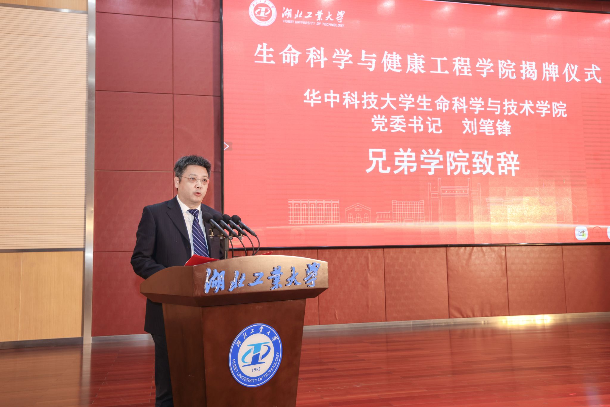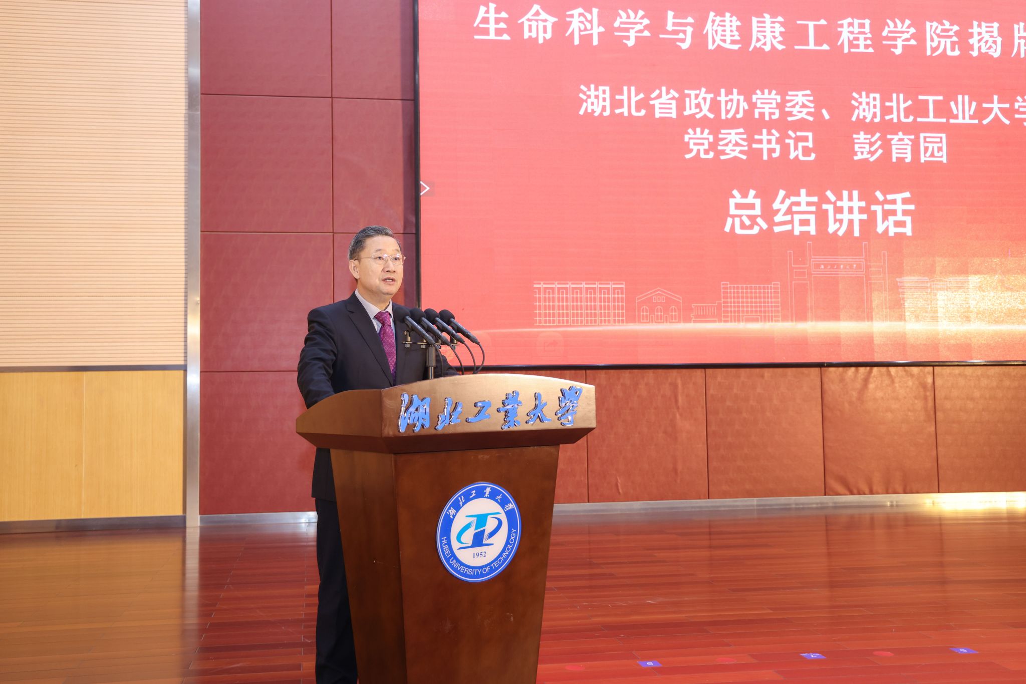 校党委书记彭育园发表讲话。他表示,湖北工业大学正向绿色工业学科特色鲜明的高水平工业大学前进,其中学院的学科建设是学校事业发展的龙头,学院更名就是湖北工业大学对习近平总书记提出的科技“四个面向”的湖北工业大学实践篇。新学院名称中的“生命科学”一词,反映了学理性、学科性以及对学科交叉的包容性,为学院后期发展预留了大量空间。“健康工程”一词,更能体现湖北工业大学建校历史及目前学院的学科特色。二者的结合,充分体现了学院从基础研究到应用研究的全链条式发展,更符合国家战略需求。