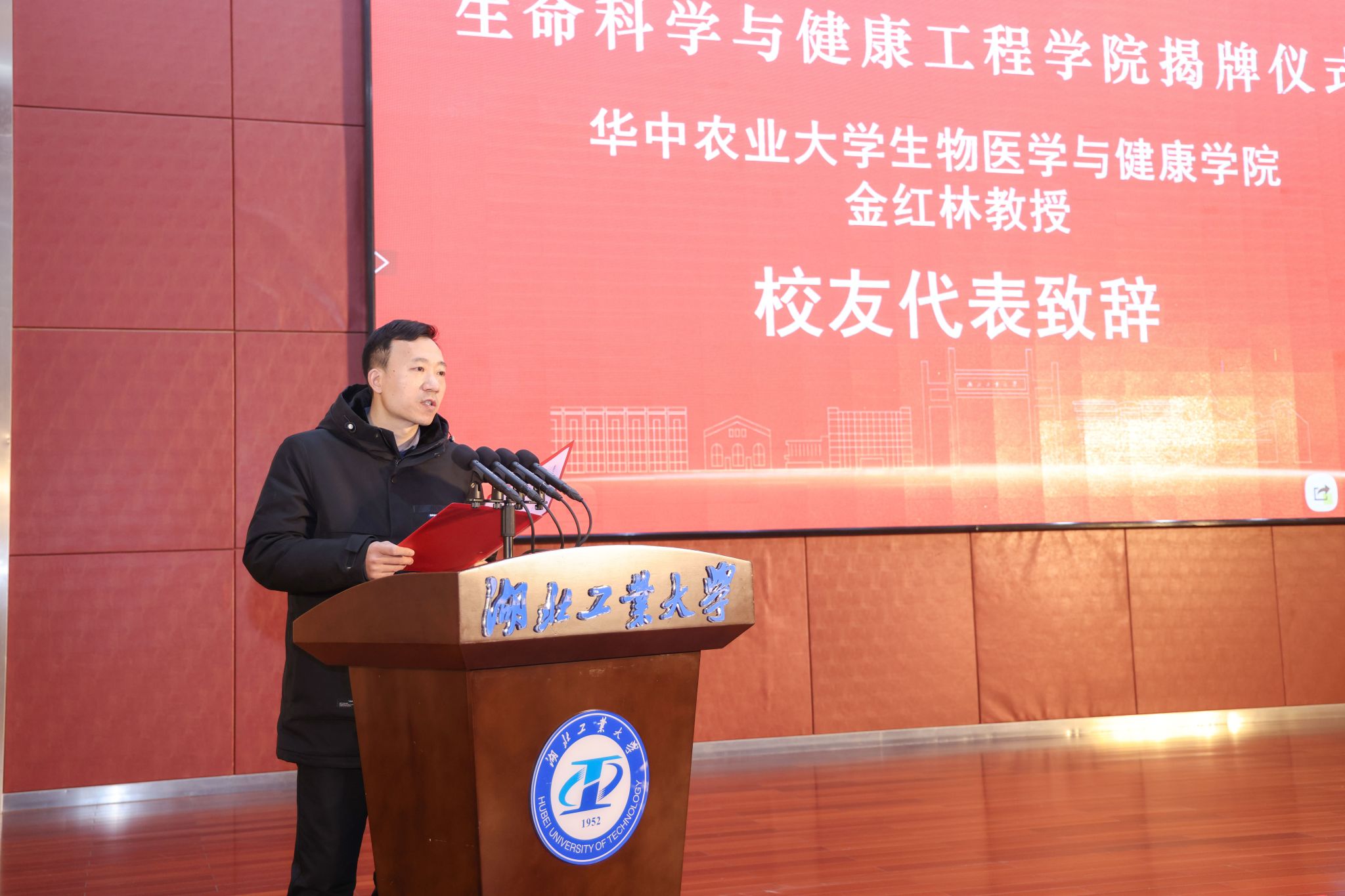 校友代表、华中农业大学生物医学与健康学院金红林教授在致辞中表示,学院更名是学院发展的必然选择和新的起点,既体现了学院的传统优势,又突显了学院对未来的追求和期望,祝愿学院在生命健康领域取得更加辉煌的成就,书写更加辉煌的篇章。
