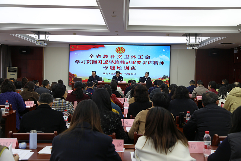 3月18日至22日,省教科文卫体工会学习贯彻习近平总书记重要讲话精神专题培训班在宜昌成功举行。省教科文卫体工会主席熊晓泉出席开班式并讲话。来自全省市州教育(教科)工会、直属工会和相关委员单位工会负责人以及新疆博州、第五师双河市工会的97名工会干部参加了培训。