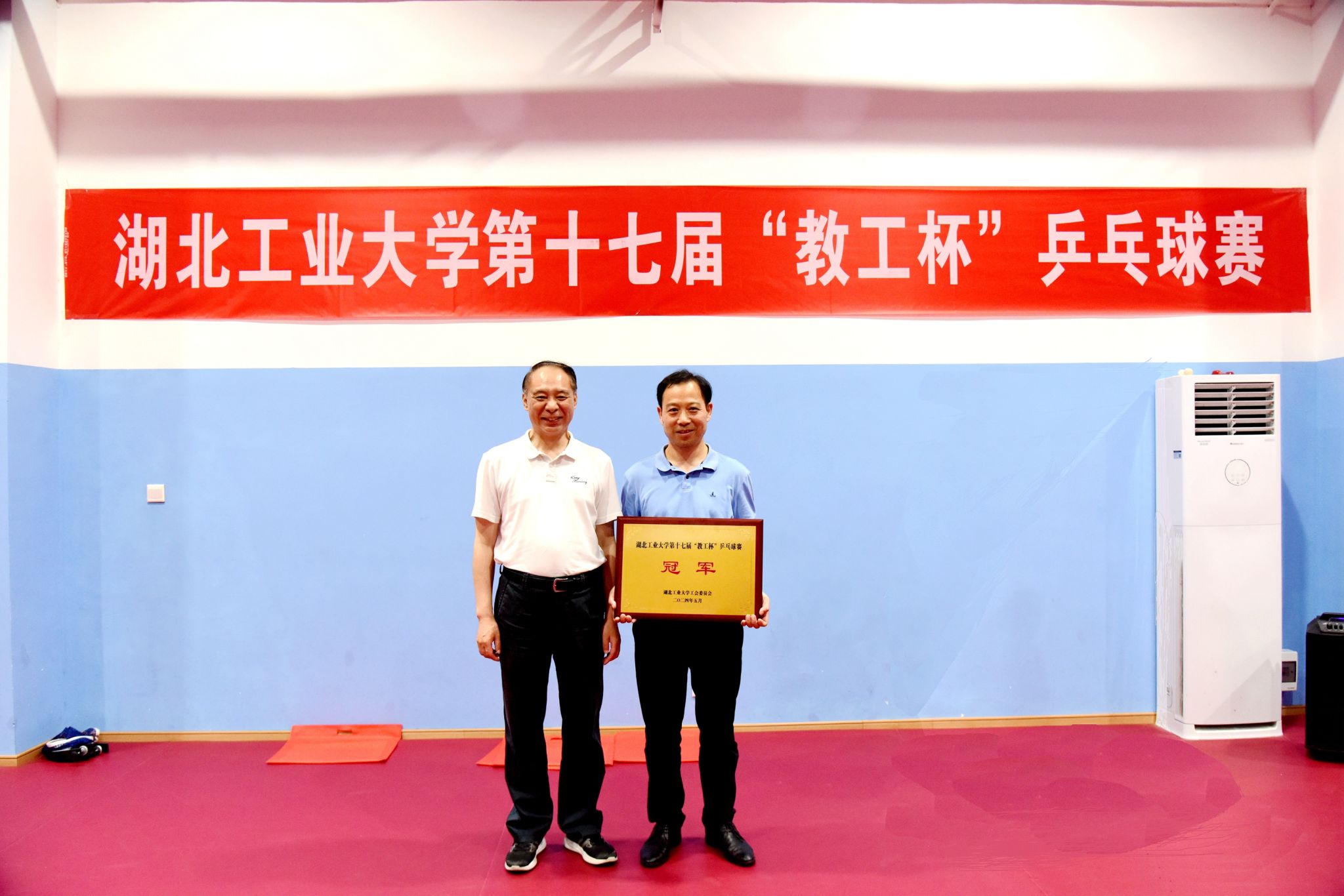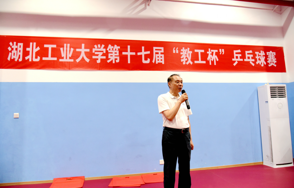 5月20日晚,湖北工业大学第十七届“教工杯”乒乓球赛圆满落下帷幕。校党委常委、副校长王侃观看比赛并参加闭幕式。