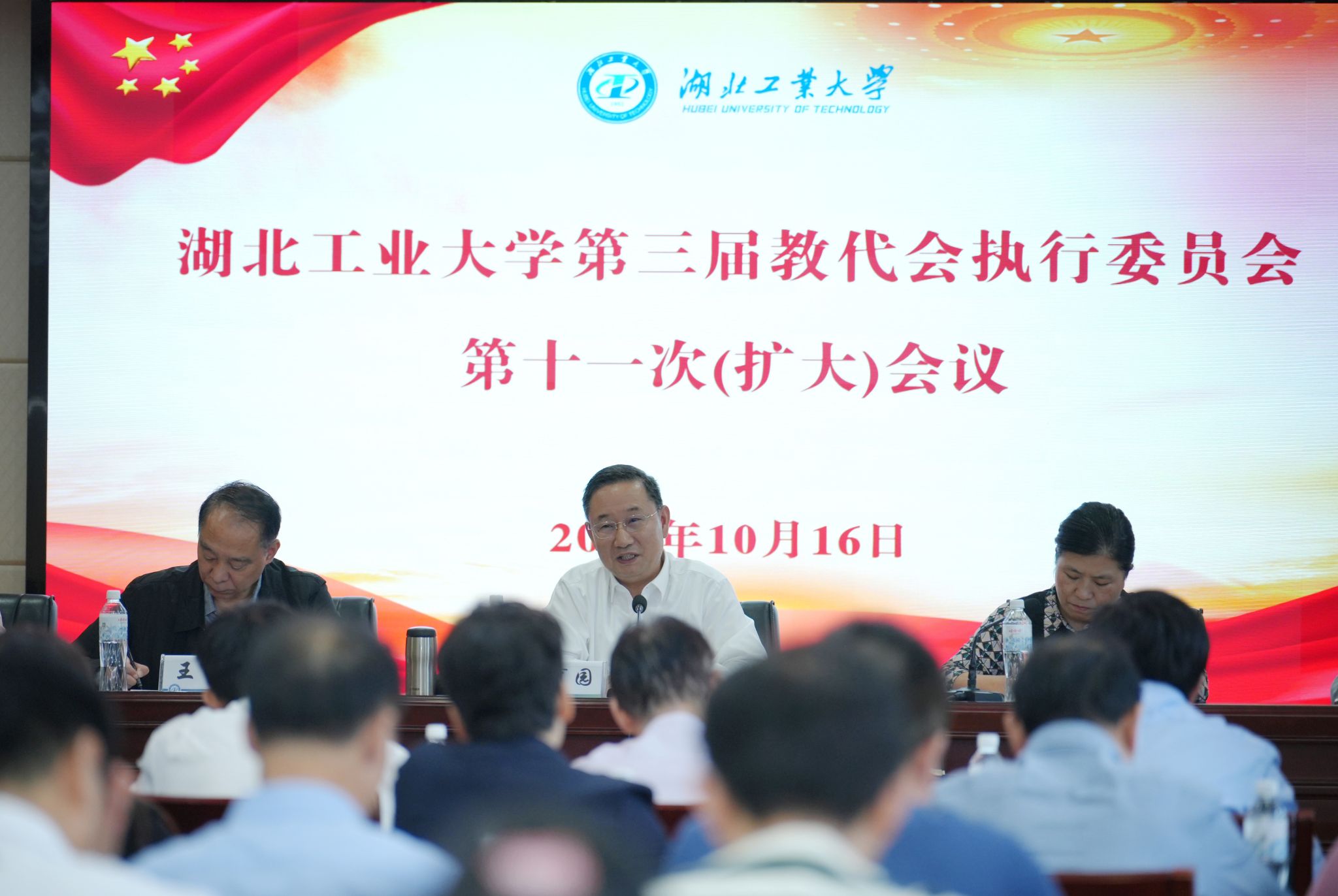 10月16日,学校第三届教代会执行委员会第十一次(扩大)会议在行政楼一楼会议室召开。校党委书记出席会议并讲话,会议由校党委副书记胡晓艳主持。
