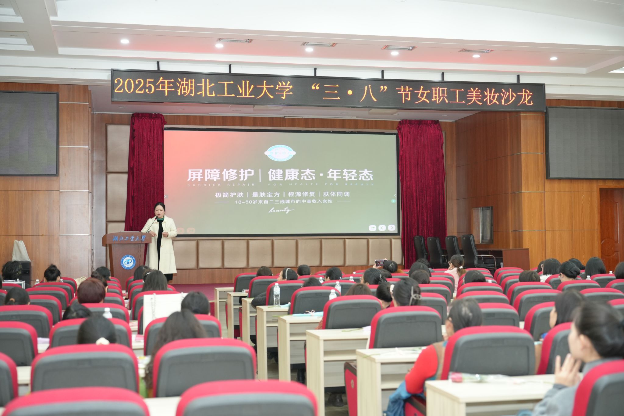 3月7日下午,在第115个“三·八”国际劳动妇女节来临之际,由校工会策划的“靓”出自信 “妆”伴一生女职工美妆知识宣讲暨沙龙活动在大学生活动中心博学堂举行,近百名女职工参加活动。