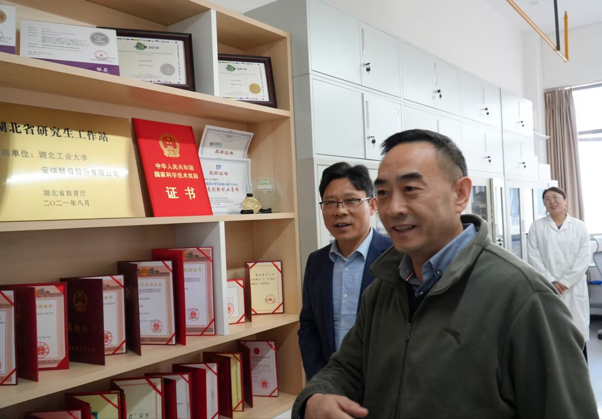 在生命与健康学院,付向东一行听取了陈雄教授关于创新工作室整体概况、团队建设、保障机制、科技攻关、成果转化、校企合作、人才培养等方面的详细介绍,查看了创新工作室的工作制度、创新成果及取得的荣誉,对创新工作室规范化建设及扎实工作给予了充分肯定,为进一步打造创新工作室的品牌效应,发挥示范引领作用提出了指导性意见。他指出,学校工会要发挥引导作用,以学校开展的劳模、职工创新工作室建设为牵引,鼓励更多的教职工参与创新实践活动,积极为支点建设赋能。